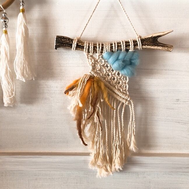 小さいsize。鹿の角マクラメタペストリー